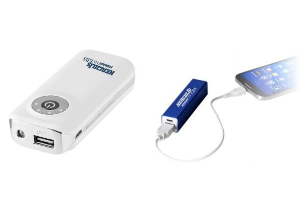 Nos batteries externes blanches, sont disponibles en deux formats : petit ou grand, pour recharger facilement vos appareils lors de vos déplacements.