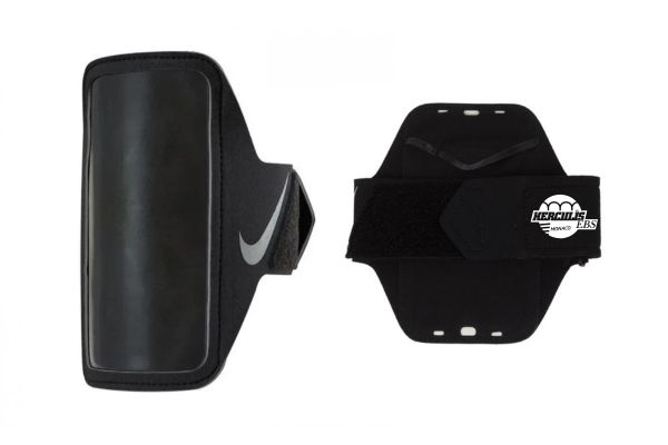 Brassard running noir conçu pour garder votre téléphone en sécurité pendant l’entraînement.